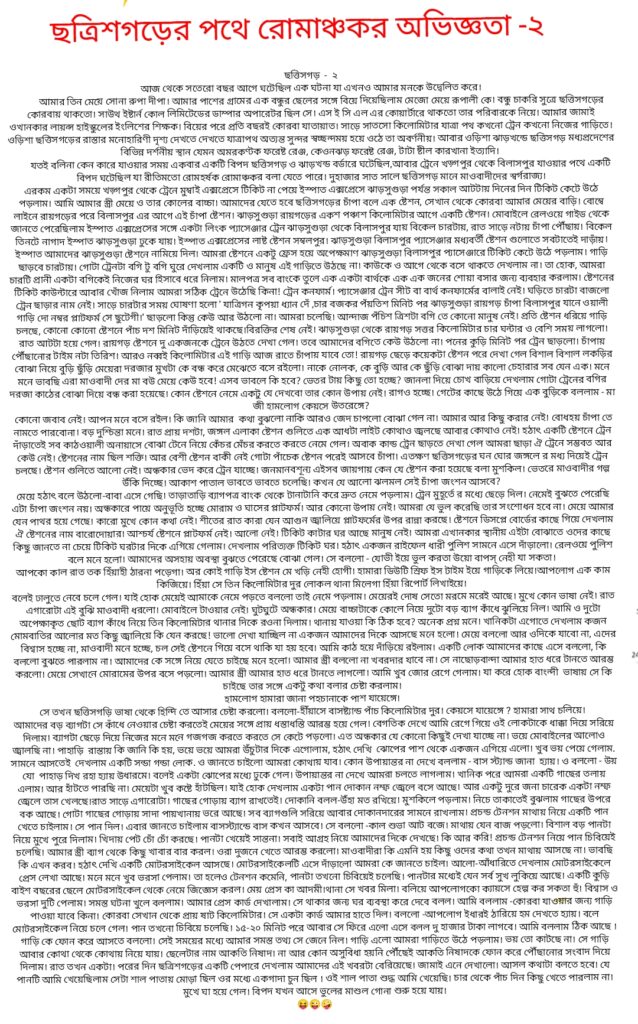 যতই বলিনা কেন কারে যাওয়ার সময় একবার একটি বিপদ ছত্তিসগড় ও ঝাড়খন্ড বর্ডারে ঘটেছিল,আবার ট্রেনে খড়্গপুর থেকে বিলাসপুর যাওয়ার পথে একটি বিপদ ঘটেছিল যা রীতিমতো রোমহর্ষক রোমাঞ্চকর বলা যেতে পারে। দুহাজার সাত সালে ছত্তিসগড় মানে মাওবাদীদের স্বর্গরাজ্য।