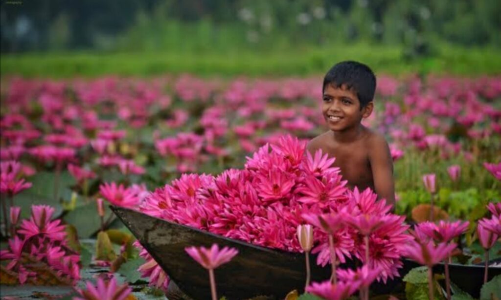 পদ্মফুল কঁইফুল দীঘির জলে শালুক তুলে খাওয়া রনপায়া চড়ে চলি কাদা পথে অবাক গ্রামের মানুষজন