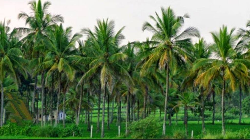 পুকুর পাড়ে শুয়ে পড়া গাছে নারকেল পাড়া ঝপাৎ করে জলে