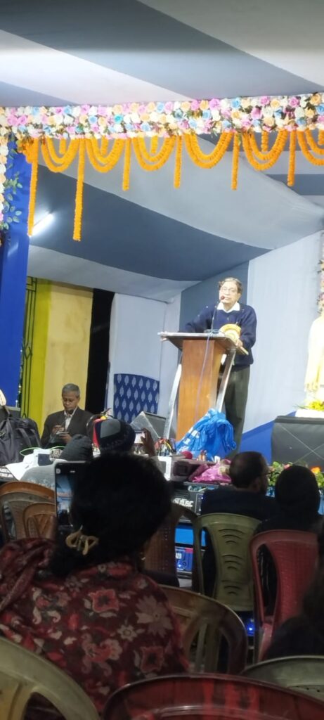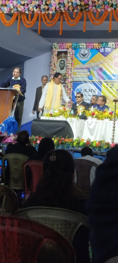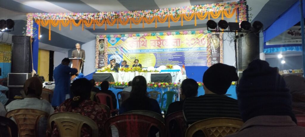 তপন বন্দোপাধ্যায় =কাঁথি বইমেলা কমিটির ডাকে বিখ্যাত সাহিত্যিক তপন বন্দোপাধ্যায় কাঁথি বইমেলা ২০২৫ উদ্বোধন করলেন ।৭৮ বছর বয়সেও তাঁর লেখনী থামেনি।অসংখ্য গল্প উপন্যাস প্রবন্ধ সম্ভার লিখেছেন। তিনি নিজেই ডিটিপি করেন এবং প্রকাশকের হাতে তুলে দেন। বইমেলা উদ্বোধন করতে এসে কাঁথিতে দুদিন থাকলেন। বন্ধু তৃনাঞ্জন দত্ত, সুদীপ মাইতির সঙ্গে কাটালেন। আমি কিছু সময়ের জন্য তাঁর সান্নিধ্যে এসে কিছু কথাবার্তা কিছু ছবি ভিডিও সবার জন্য ধরে রাখলাম। সাহিত্য মন্দিরের সম্পাদক তৃনাঞ্জন দত্ত তার শীতকালীন সংখ্যা তপন বন্দোপাধ্যায়ের হাতেই প্রকাশ করলেন, সেইসঙ্গে একটি সাক্ষাৎকারের ভিডিও করলাম। এই তপন বন্দোপাধ্যায় যিনি ২০২৪ এ অ্যাকাডেমি পুরস্কার পেয়েছেন তাঁর ‘বীরবল’ সাহিত্যকর্মে। কালিদাস সম্পর্কে কোন তথ্য যা আজ পর্যন্ত জানা যায়নি। তিনি তাঁর “কালিদাসস্য”নামক গ্রন্থে সেই সব তথ্য আবিষ্কারের কাহিনী বর্ণনা করেছেন। প্রকাশ খুব শীঘ্রই করবেন। সাংবাদিক সুদীপ মাইতির বাড়িতে কিছুক্ষন কাটিয়ে তিনি আবার কোলকাতা ফিরলেন। তৃনাঞ্জনের সঙ্গে একটি সাক্ষাৎকার এই ভিডিওতে দেখা যাবে।এই সম্পর্কে তপন বন্দোপাধ্যায় নিজের কিছু কথা তাঁর ফেসবুক থেকে নেওয়া এখানে দিলাম।শীতের মরসুমে লেখকদের কাছে আমন্ত্রণ আসে বইমেলা উদবোধন করতে। ইদানিং যাব-না বলছি বেশি। তার মধ্যে কাঁথি বইমেলায় যেতে রাজি হয়ে গেলাম সাহিত্যপ্রেমী সুদীপ মাইতির আমন্ত্রণ পেয়ে। হার্দিক অনুরোধ পেলাম বইমেলার সভাপতি অবসরপ্রাপ্ত অধ্যক্ষ অমলেন্দু বিকাশ জানার ফোনে। গত ১২ ডিসেম্বর দুপুরে পৌঁছে উঠলাম থানার বিপরীতে ইরিগেশন বাংলোর প্রশস্ত ঘরে। তবে বিস্ময়াভিভূত হলাম যখন সভাপতি নিজের ঘরে রান্না করা পঞ্চব্যঞ্জন সহ মধ্যাহ্নভোজের আয়োজন করলেন। আমার দীর্ঘকালের সাহিত্যজীবনে এমন ঘটনা এই প্রথম। সুদীপ মাইতি সারাক্ষণ ব্যস্ত থাকলেন আমাদের আপ্যায়নে যাতে ত্রুটি না হয় তা দেখতে।কবি ও সম্পাদক দেবাশিস প্রধান এসে দেখা করে গেল।বিকেলে বইমেলার মঞ্চে উপস্থিত হলেন কাঁথির বিশিষ্ট ব্যক্তিবর্গ। নীচের ছবি ও সংবাদে সবার নাম আছে।সমস্ত বিশিষ্টজনদের বক্তব্যের মাঝে অনেকগুলি নৃত্যানুষ্ঠান ও সংগীতের আয়োজন ছিল যা প্রশংসা পেল সর্বজনের। এমন সুচারু আয়োজন দেখে খুব আপ্লুত ও অভিভূত হয়েছি।ফিতে কাটার সময় দেখি স্থানীয় স্কুলগুলির কয়েকশো ছাত্রছাত্রী। স্থানীয় মহিলাদের উৎসাহ দেখে আমি বিস্মিত। আমার মাথায় এত ফুলের পাপড়ি নিক্ষিপ্ত হল যে আমি তখন পাপড়ি শোভিত।মঞ্চে বইমেলার আয়োজন নিয়ে বললেন কাঁথি পৌরসভার চেয়ারম্যান সুপ্রকাশ গিরি, ভাইস চেয়ারম্যান নিরঞ্জন মান্না, প্রাক্তন মন্ত্রী চক্রধর মেইকাপ, প্রাক্তন বিধায়ক শৈলজা দাস, মেলা কমিটি