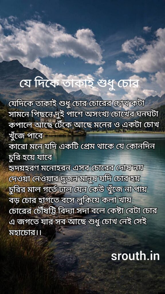 এ জগতে যার সব আছে শুধু চোখ নেই সেই মহাচোর।।