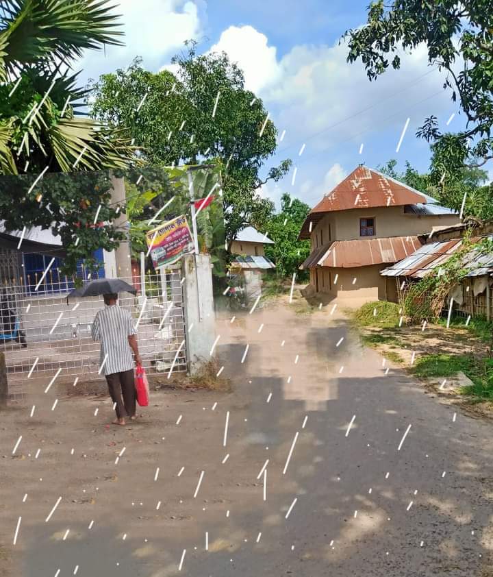 কমল বাবুর হাতে বাজার ব্যাগ অন্য হাতে ছাতা